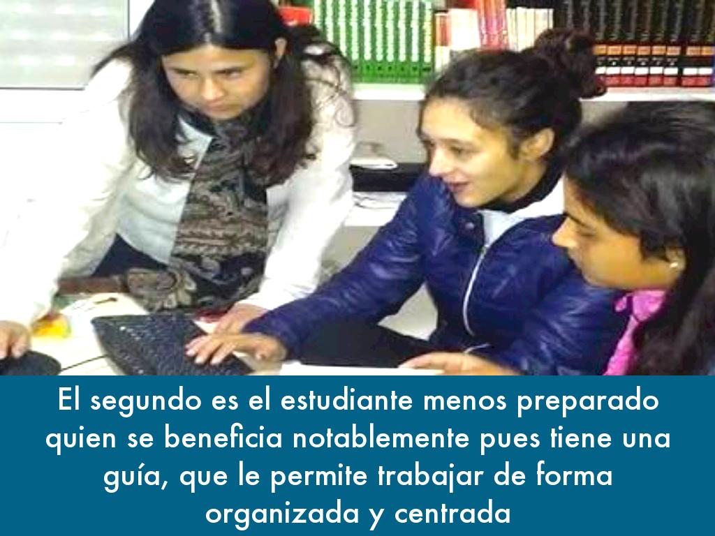 El segundo es el estudiante menos preparado quien se beneficia notablemente pues tiene una guía, que le permite trabajar de forma organizada y centrada