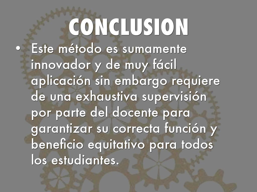 - Este método es sumamente innovador y de muy fácil aplicación sin embargo requiere de una exhaustiva supervisión por parte del docente para garantizar su correcta función y beneficio equitativo para todos los estudiantes.