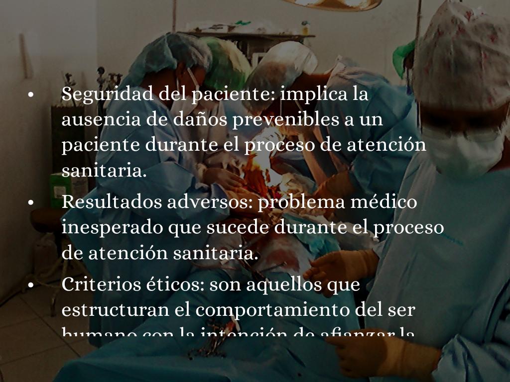 Seguridad del paciente: implica la ausencia de daños prevenibles a un paciente durante el proceso de atención sanitaria.