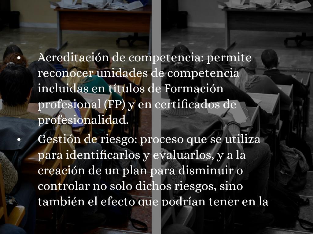 Acreditación de competencia: permite reconocer unidades de competencia incluidas en títulos de Formación profesional (FP) y en certificados de profesionalidad.