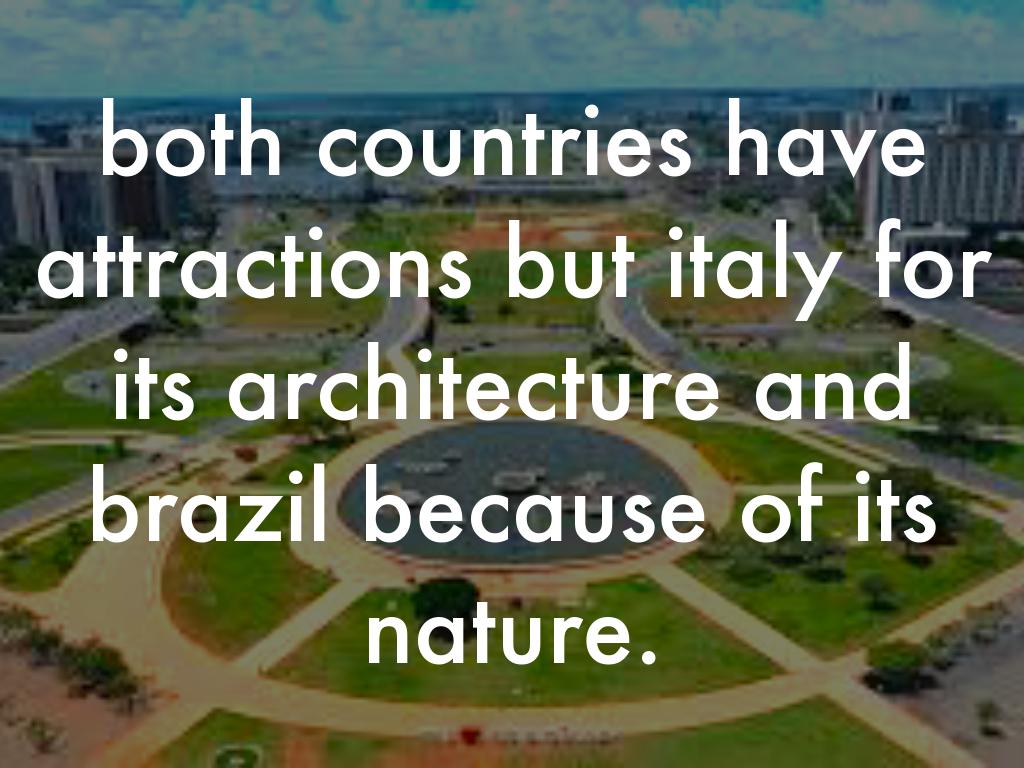 both countries have attractions but italy for its architecture and brazil because of its nature.