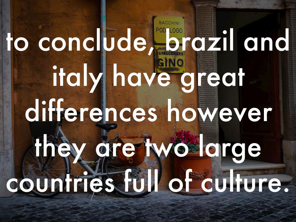 to conclude, brazil and italy have great differences however they are two large countries full of culture.