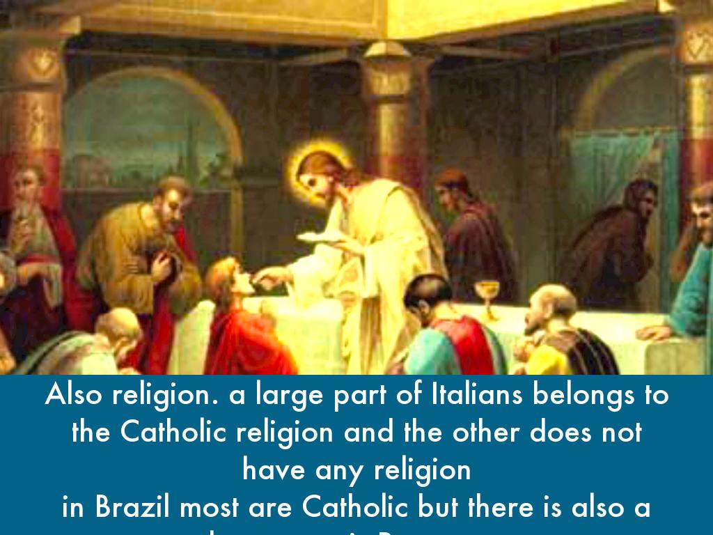 Also religion. a large part of Italians belongs to the Catholic religion and the other does not have any religion