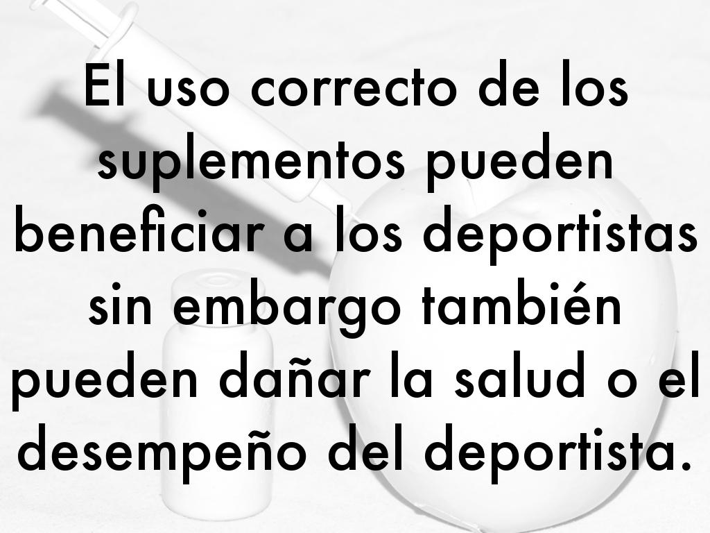 El uso correcto de los suplementos pueden beneficiar a los deportistas sin embargo también pueden dañar la salud o el desempeño del deportista.