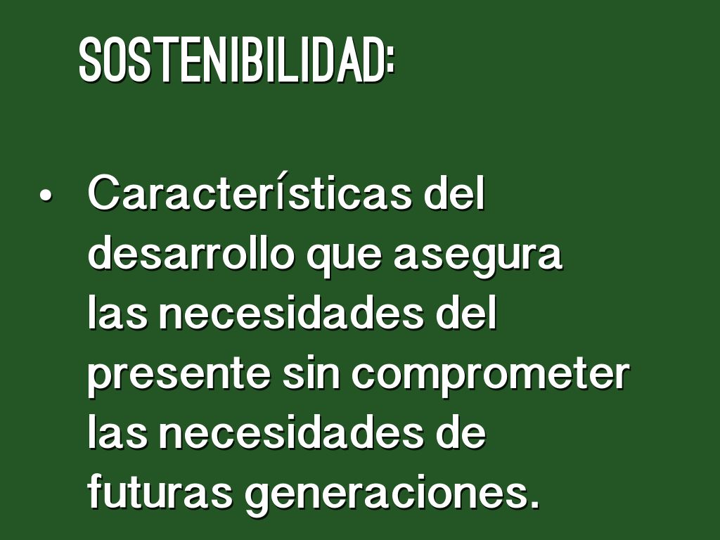 Busca el respeto a los ecosistemas e implica la compatibilidad entre las actividades sociales y económicas, así como la preservación de la biodiversidad. Señala la necesidad de modificar las pautas de consumo para: