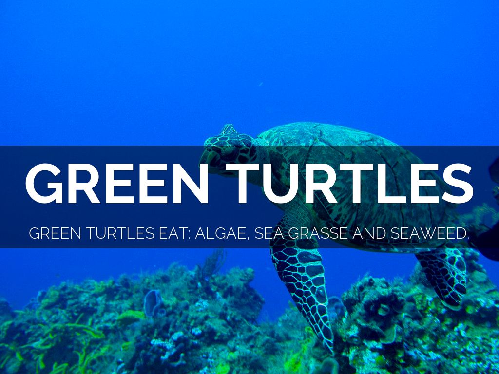 GREEN TURTLES EAT: ALGAE, SEA GRASSE AND SEAWEED.
