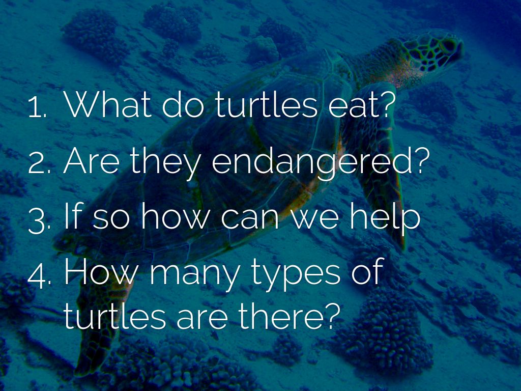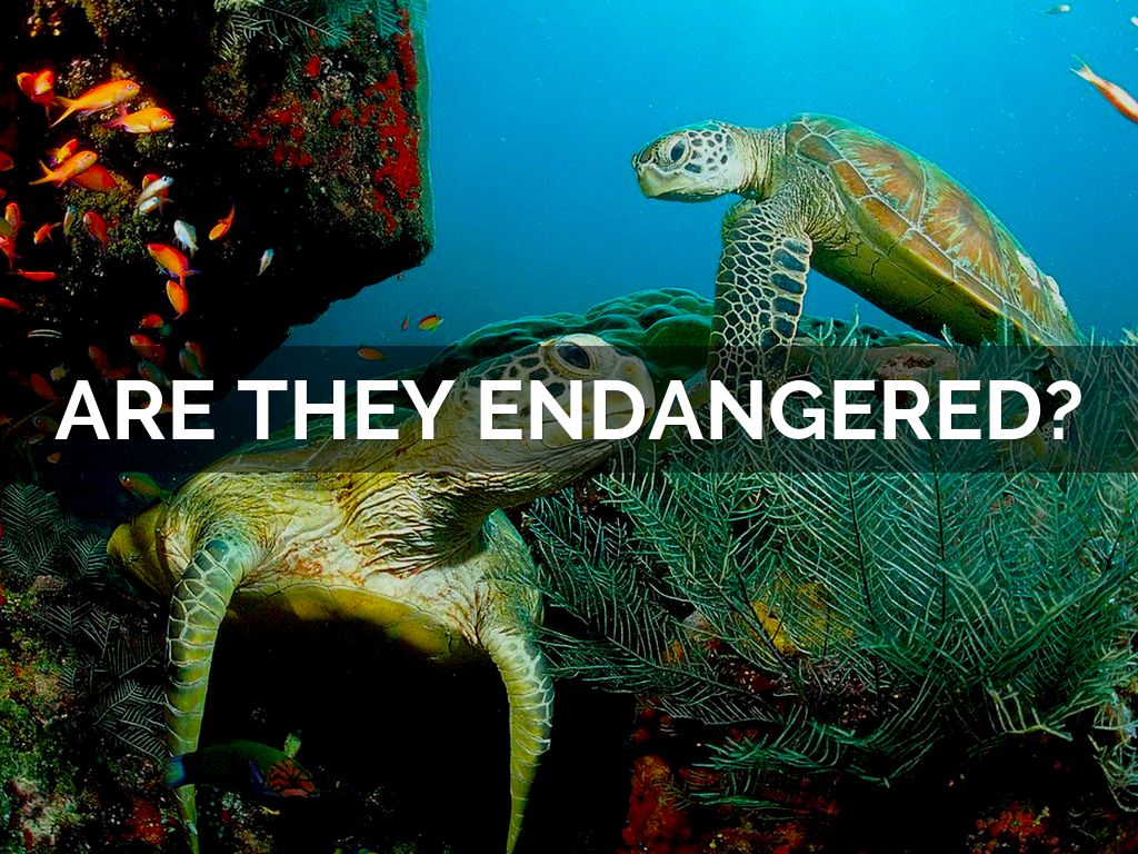 TURTLES ARE ENDANGERED, BECAUSE: PEOPLE THROW PLASTIC BAGS IN THE SEA END TURTLES EAT THEM THINKING THEY ARE JELLYFISH, entanglement in fishing gear, they are being poached and illegally traded and global warming