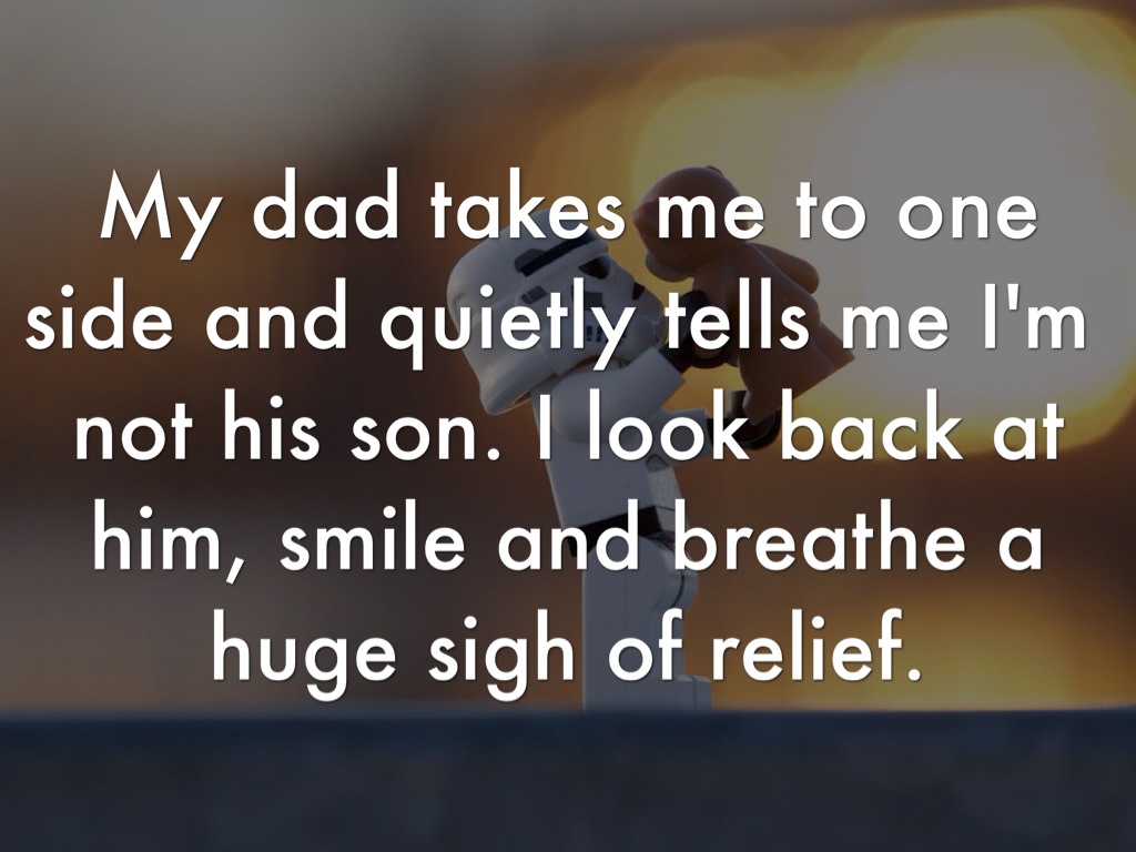 My dad takes me to one side and quietly tells me I'm not his son. I look back at him, smile and breathe a huge sigh of relief.