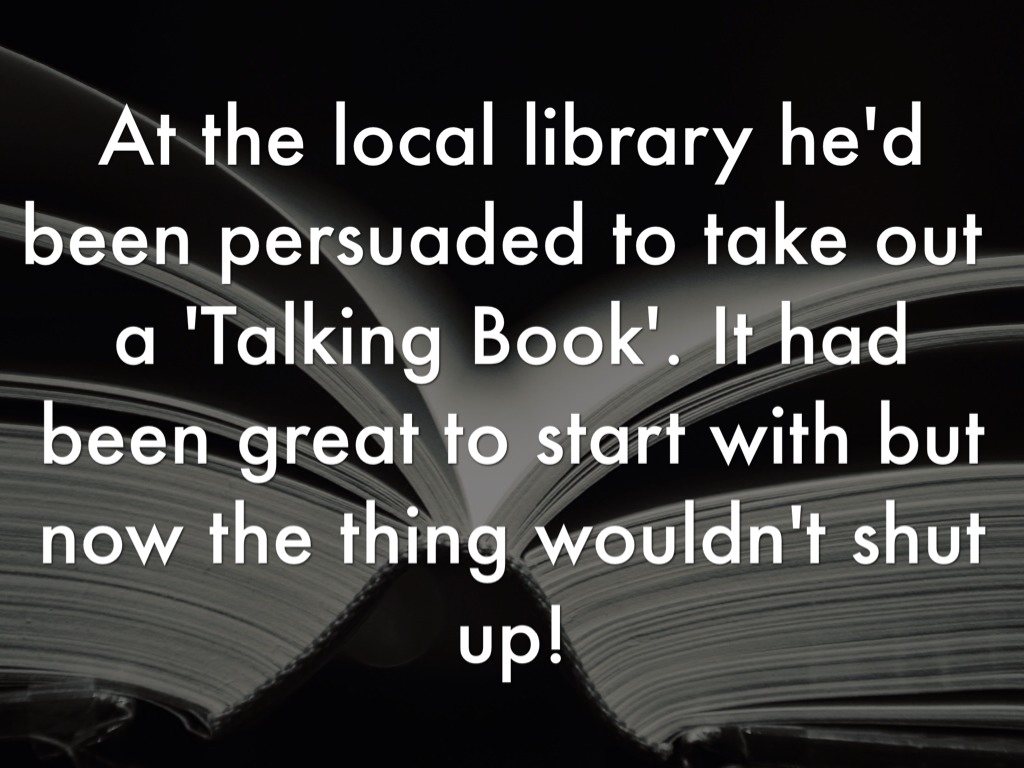 At the local library he'd been persuaded to take out a 'Talking Book'. It had been great to start with but now the thing wouldn't shut up!