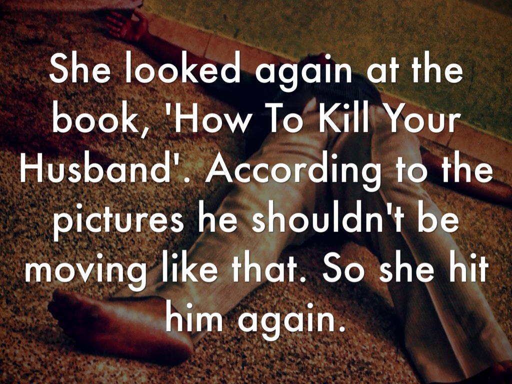 She looked again at the book, 'How To Kill Your Husband'. According to the pictures he shouldn't be moving like that. So she hit him again.