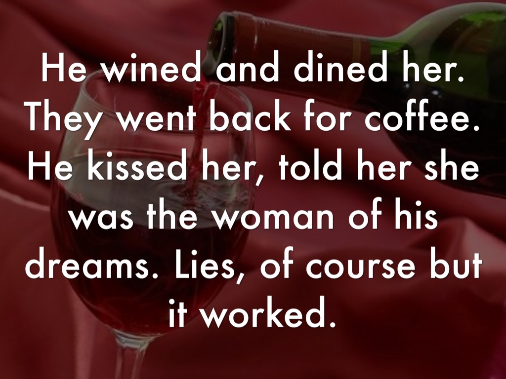 He wined and dined her. They went back for coffee. He kissed her, told her she was the woman of his dreams. Lies, of course but it worked.