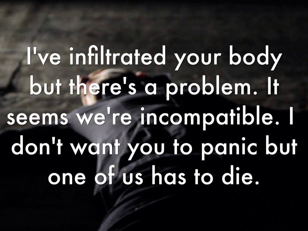 I've infiltrated your body but there's a problem. It seems we're incompatible. I don't want you to panic but one of us has to die.