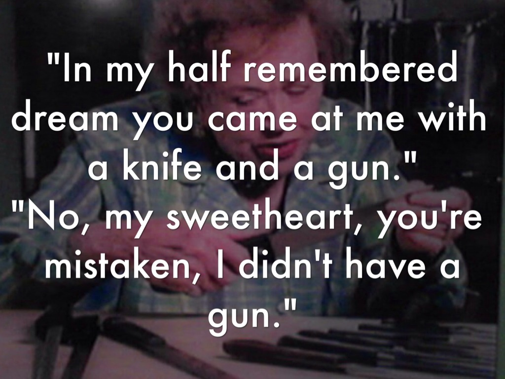 "In my half remembered dream you came at me with a knife and a gun."