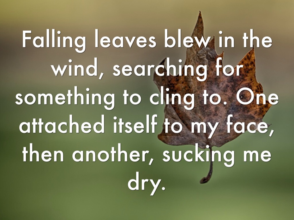 Falling leaves blew in the wind, searching for something to cling to. One attached itself to my face, then another, sucking me dry.