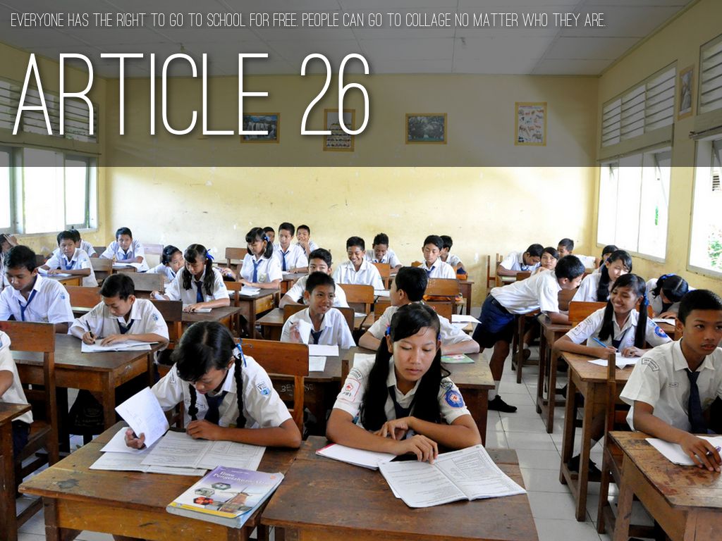 EVERYONE HAS THE RIGHT TO GO TO SCHOOL FOR FREE. PEOPLE CAN GO TO COLLAGE NO MATTER WHO THEY ARE.
