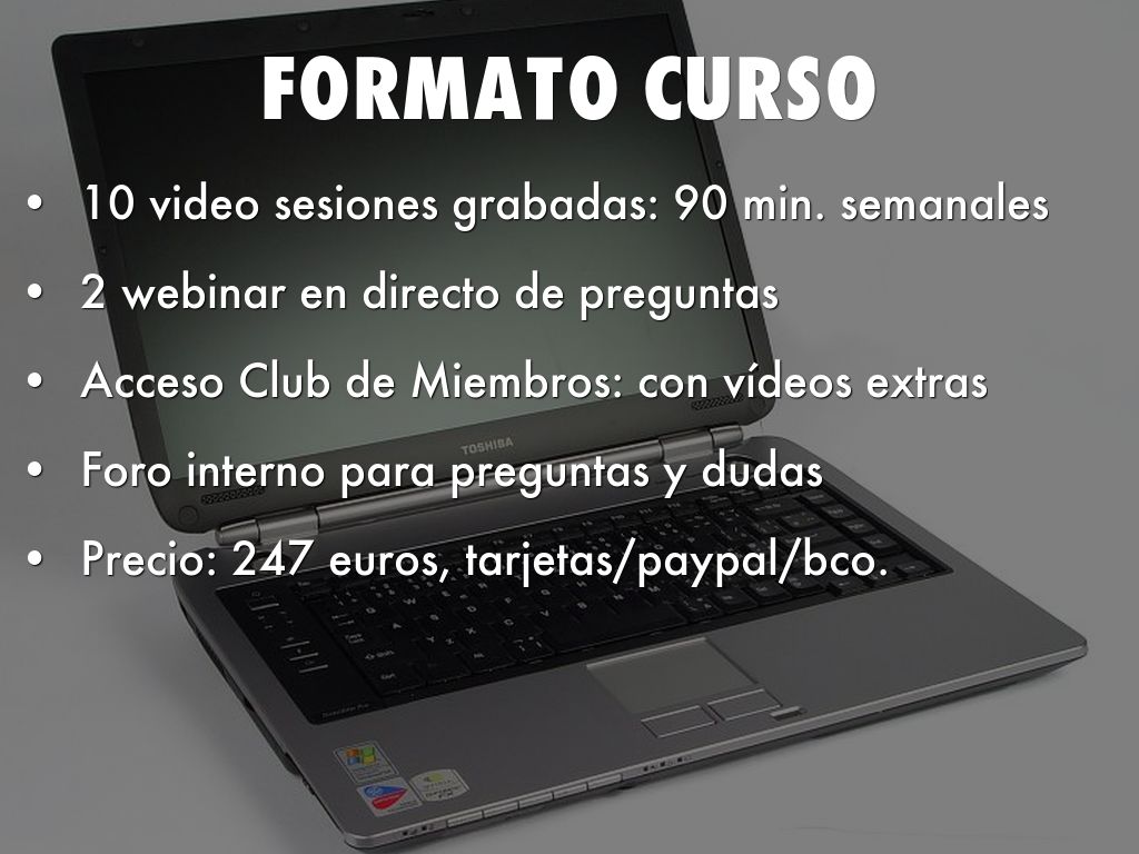10 video sesiones grabadas: 90 min. semanales