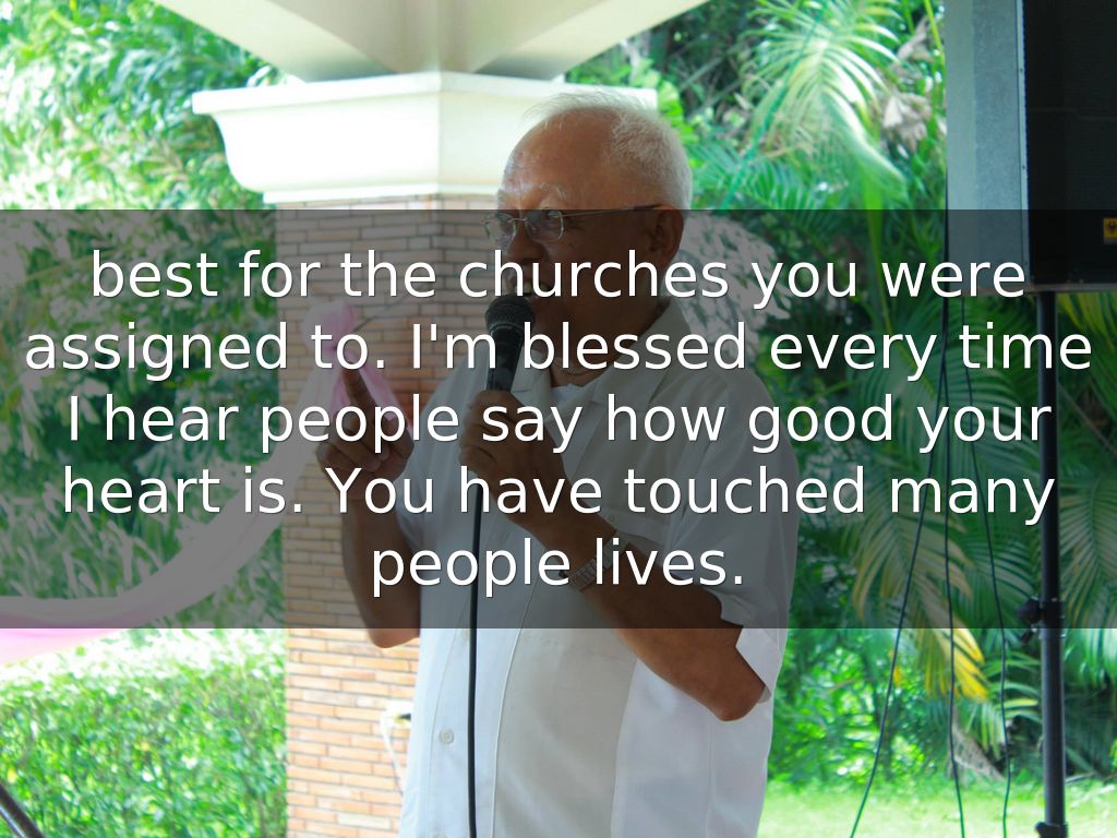 best for the churches you were assigned to. I'm blessed every time I hear people say how good your heart is. You have touched many people lives.