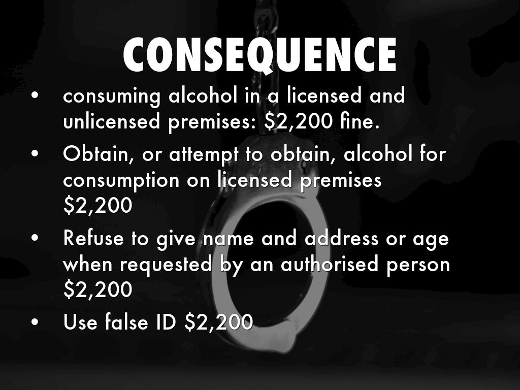 • consuming alcohol in a licensed and unlicensed premises: $2,200 fine.