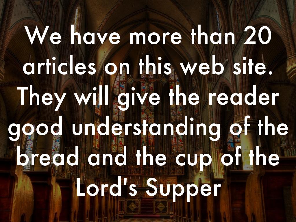 We have more than 20 articles on this web site. They will give the reader good understanding of the bread and the cup of the Lord's Supper