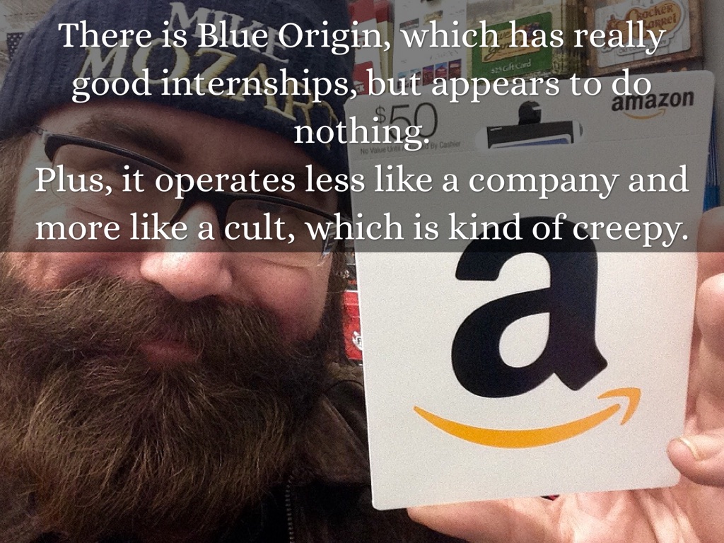 There is Blue Origin, which has really good internships, but appears to do nothing.