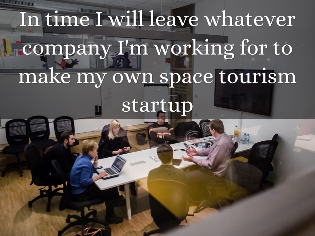 In time I will leave whatever company I'm working for to make my own space tourism startup