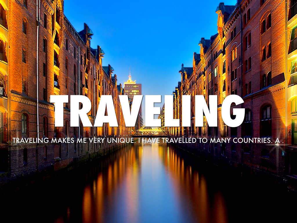 TRAVELING MAKES ME VERY UNIQUE. I HAVE TRAVELLED TO MANY COUNTRIES. A .