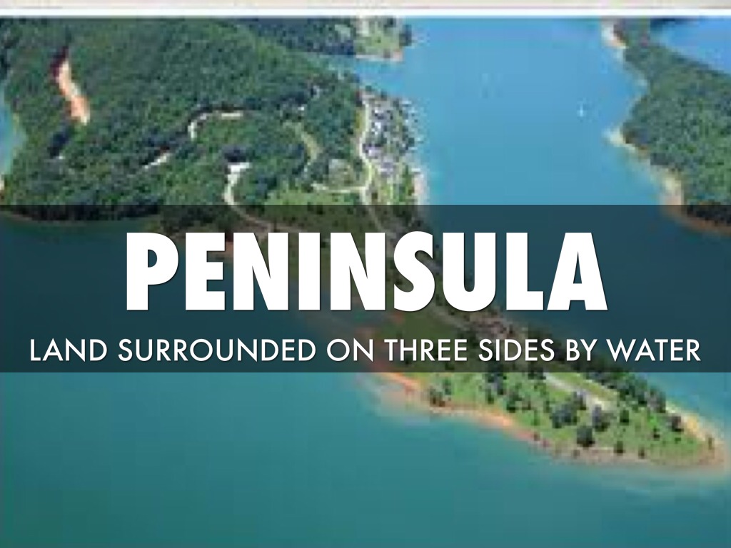 LAND SURROUNDED ON THREE SIDES BY WATER