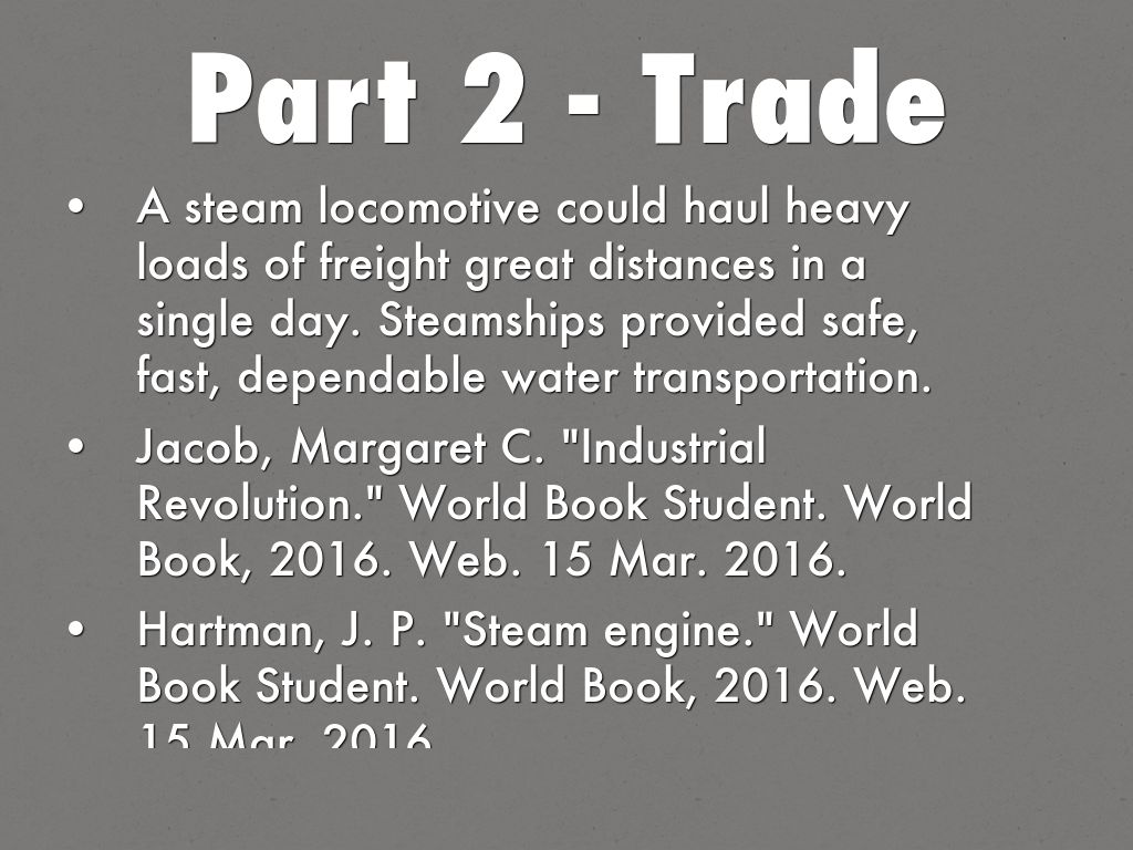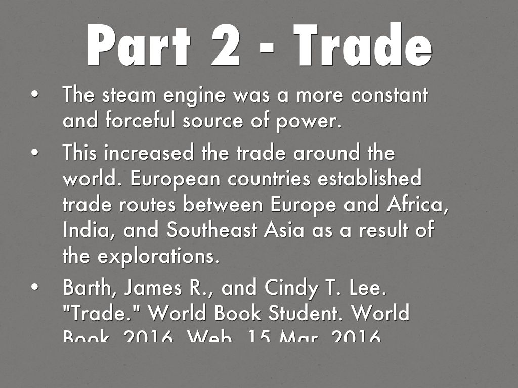 Barth, James R., and Cindy T. Lee. "Trade." World Book Student. World Book, 2016. Web. 15 Mar. 2016.