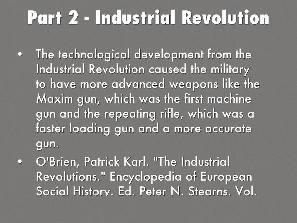 O'Brien, Patrick Karl. "The Industrial Revolutions." Encyclopedia of European Social History. Ed. Peter N. Stearns. Vol. 2: Processes of Change/Population/Cities/Rural Life/State & Society. Detroit: Charles Scribner's Sons, 2001. 51-65. Gale Virtual Reference Library. Web. 15 Mar. 2016.