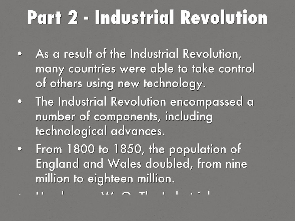 The Industrial Revolution encompassed a number of components, including technological advances.