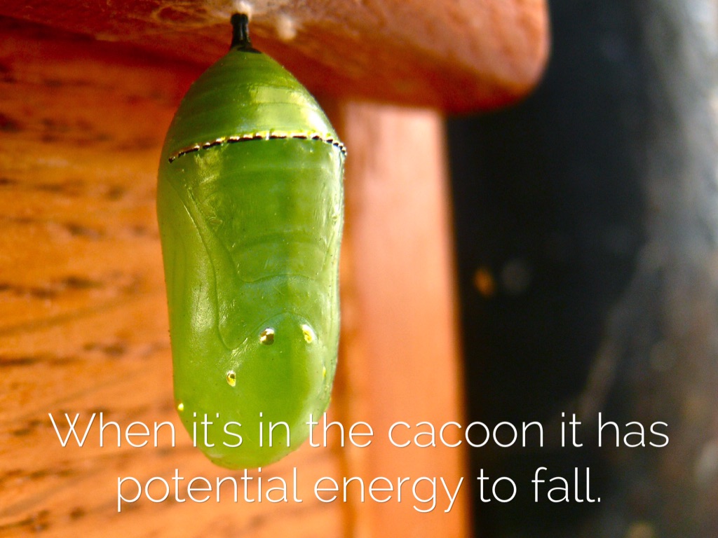 When it's in the cacoon it has potential energy to fall.