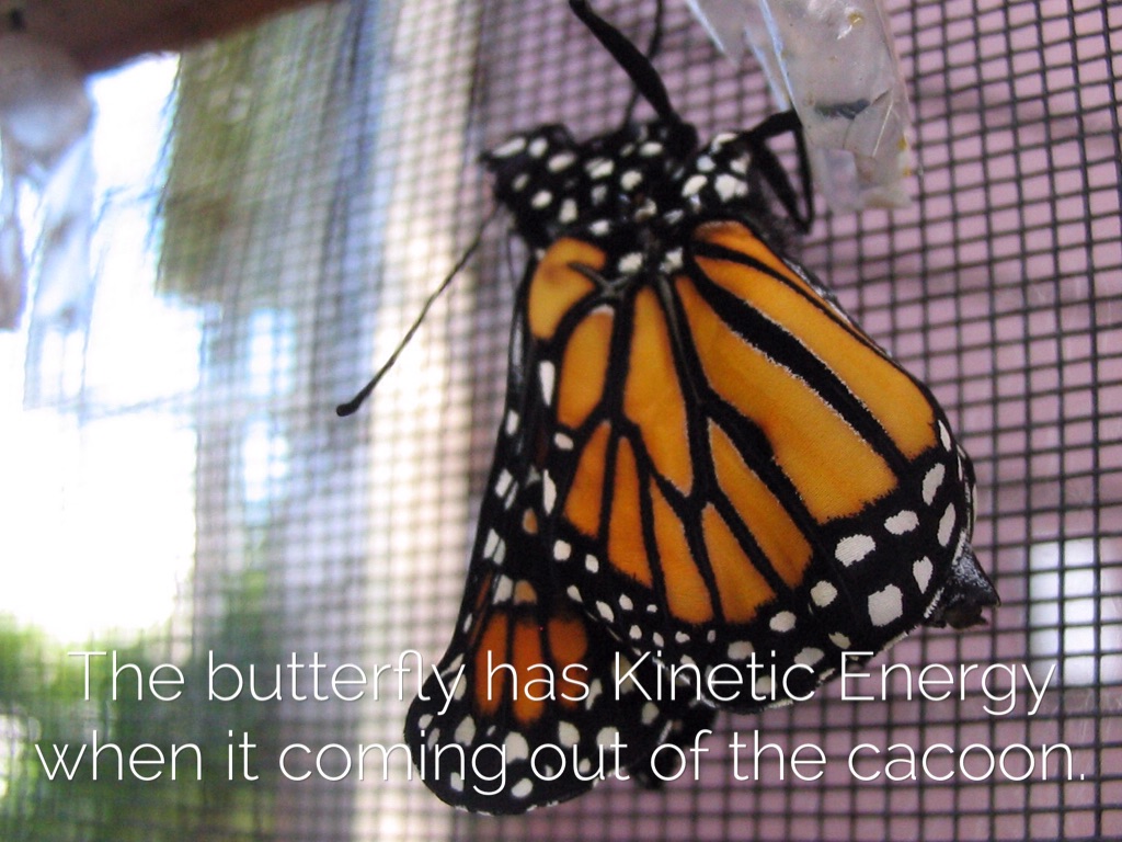 The butterfly has Kinetic Energy when it coming out of the cacoon.