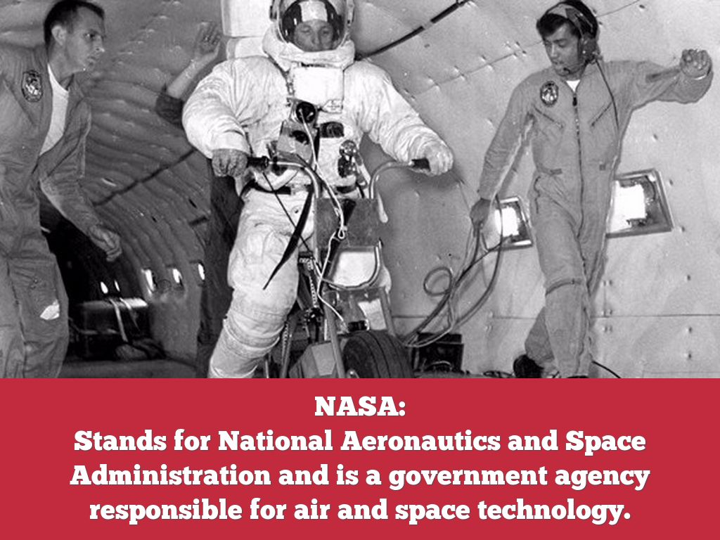 Stands for National Aeronautics and Space Administration and is a government agency responsible for air and space technology.