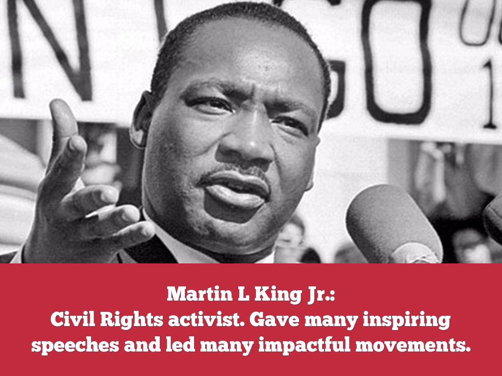 Civil Rights activist. Gave many inspiring speeches and led many impactful movements.