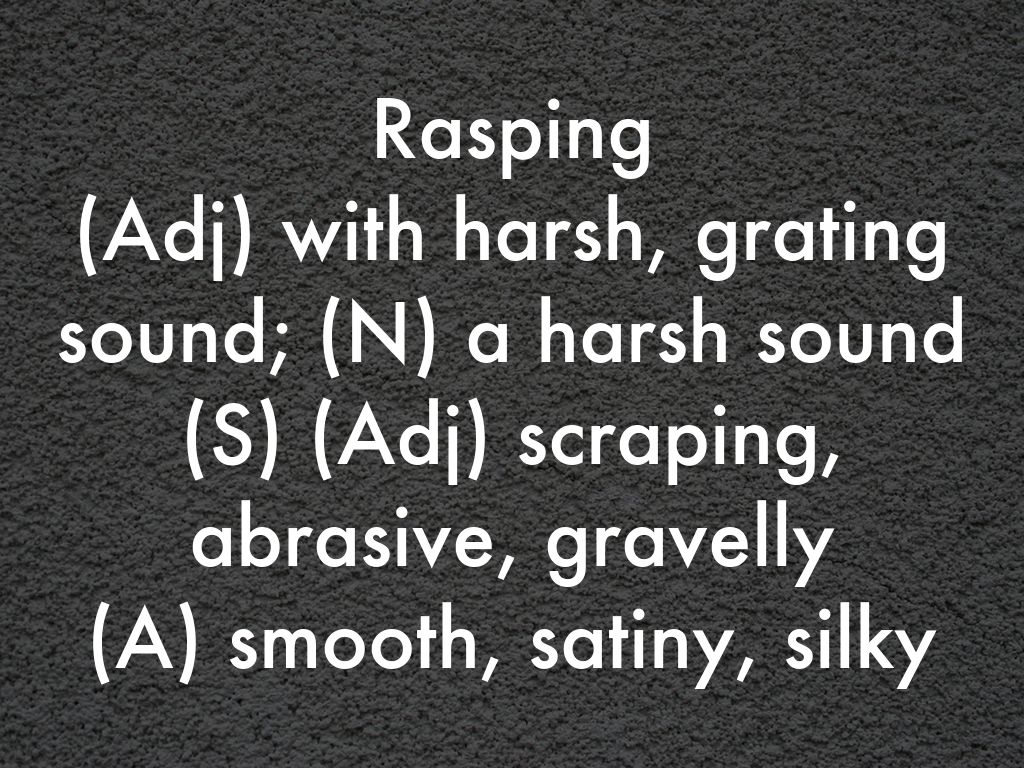 (Adj) with harsh, grating sound; (N) a harsh sound
