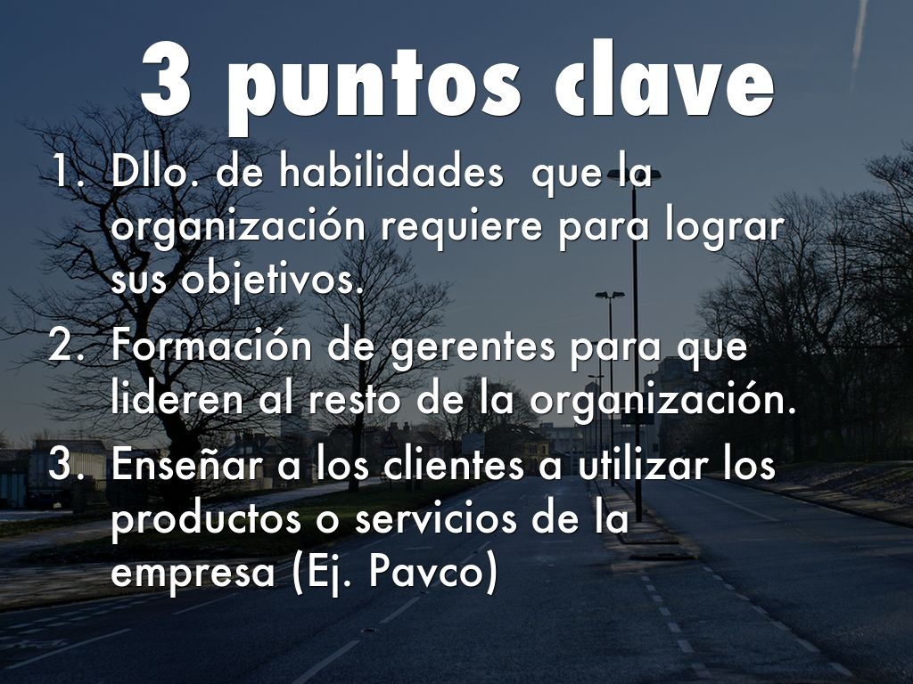 • Dllo. de habilidades que la organización requiere para lograr sus objetivos.