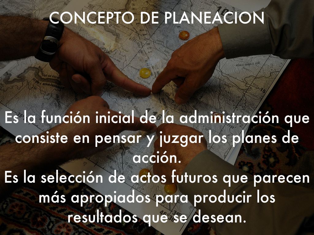 Es la función inicial de la administración que consiste en pensar y juzgar los planes de acción. Es la selección de actos futuros que parecen más apropiados para producir los resultados que se desean.