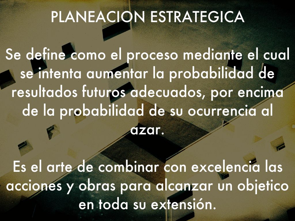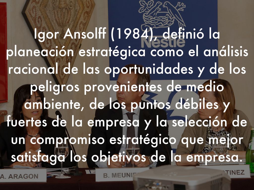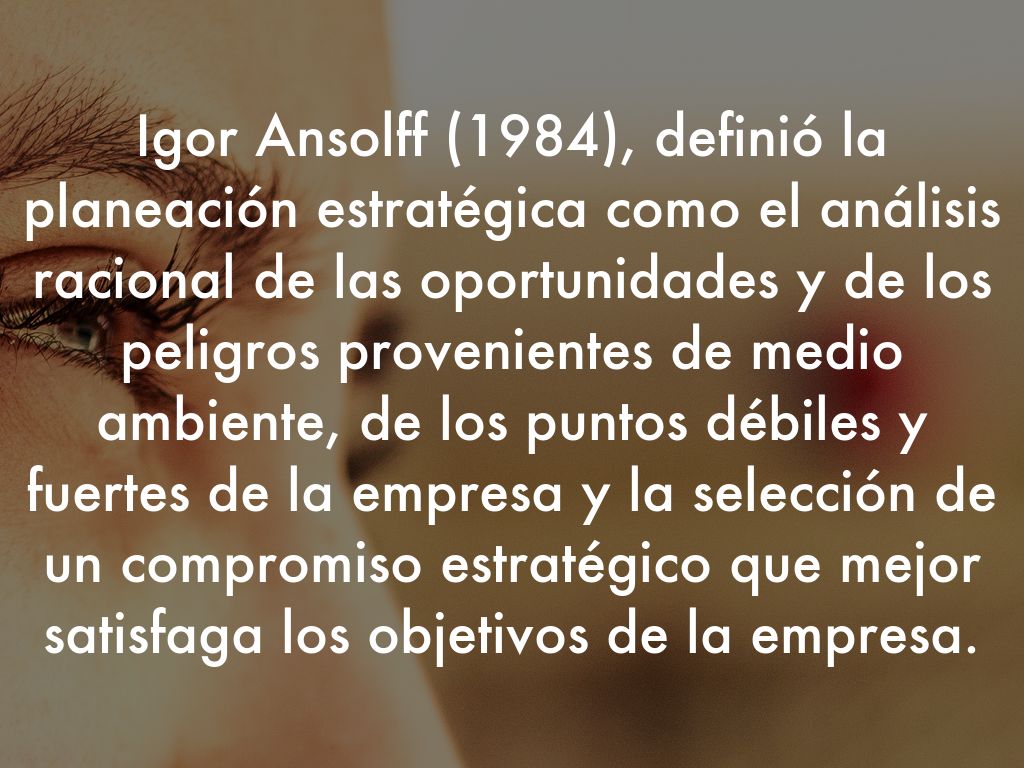 Igor Ansolff (1984), definió la planeación estratégica como el análisis racional de las oportunidades y de los peligros provenientes de medio ambiente, de los puntos débiles y fuertes de la empresa y la selección de un compromiso estratégico que mejor satisfaga los objetivos de la empresa.