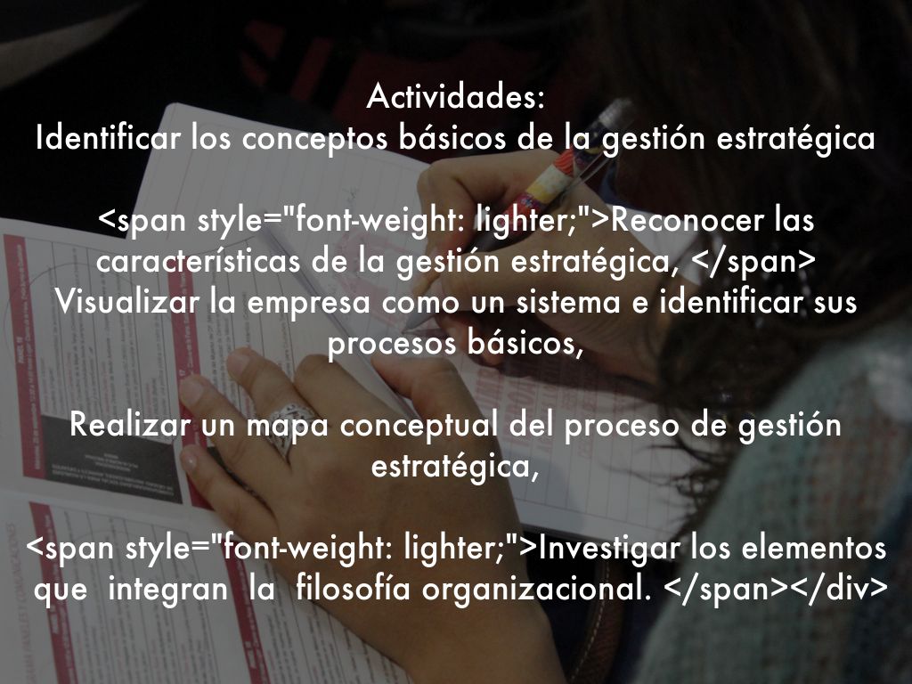 Actividades: Identificar los conceptos básicos de la gestión estratégica