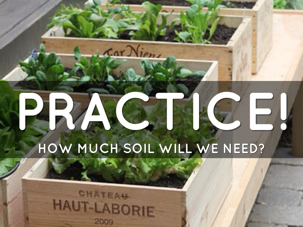 Come up with a real-life problem where kids have to measure the volume of garden boxes to figure out how much soil to buy.