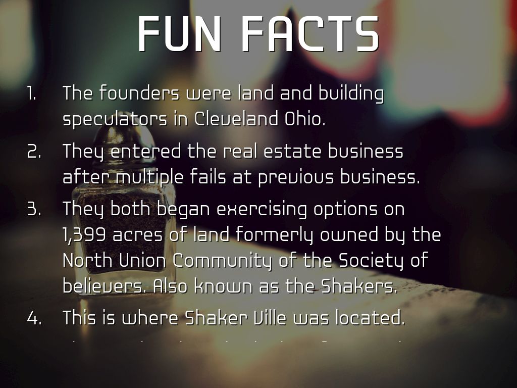 • The founders were land and building speculators in Cleveland Ohio.