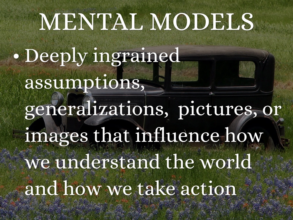 Deeply ingrained assumptions, generalizations, pictures, or images that influence how we understand the world and how we take action