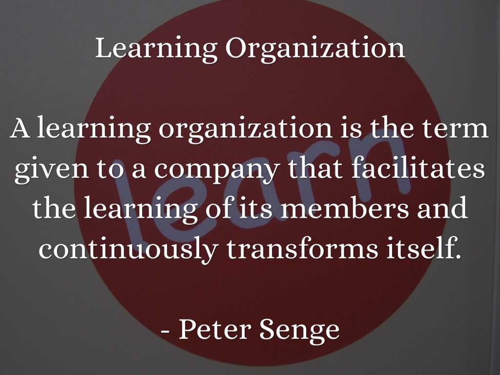 A learning organization is the term given to a company that facilitates the learning of its members and continuously transforms itself.