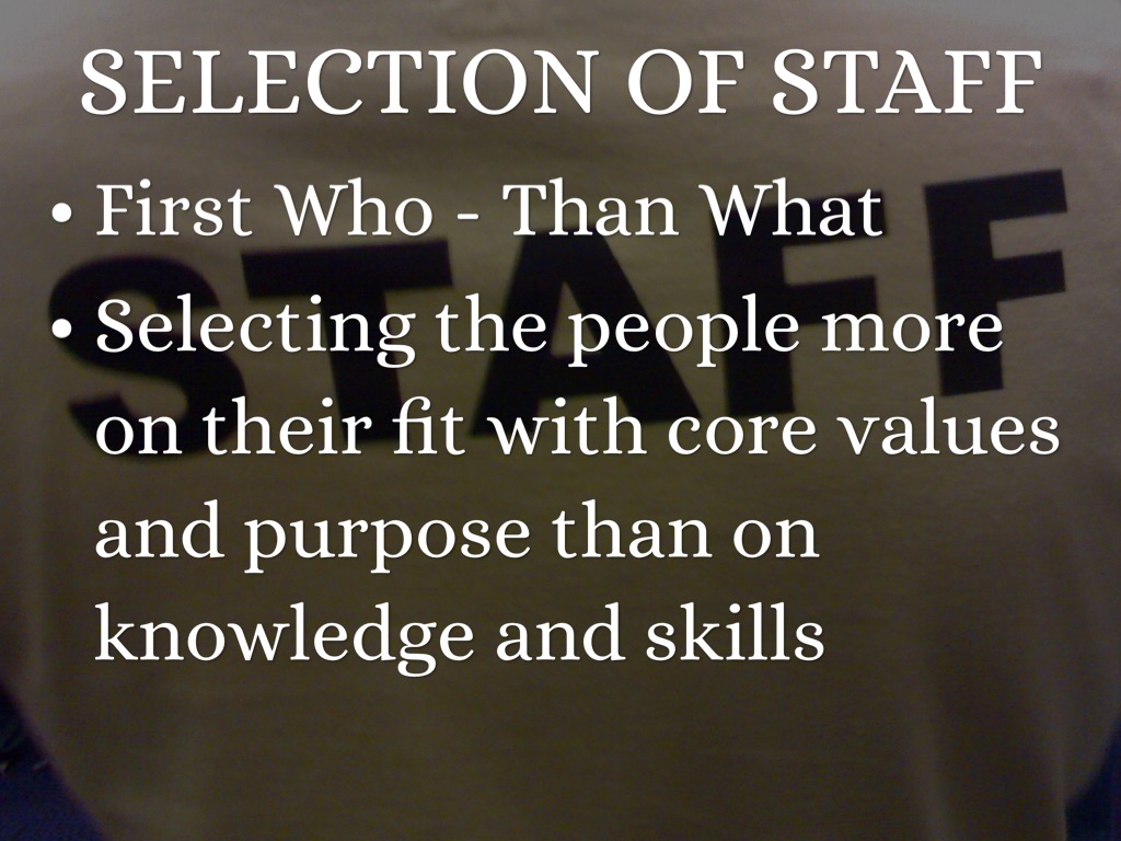 Selecting the people more on their fit with core values and purpose than on knowledge and skills