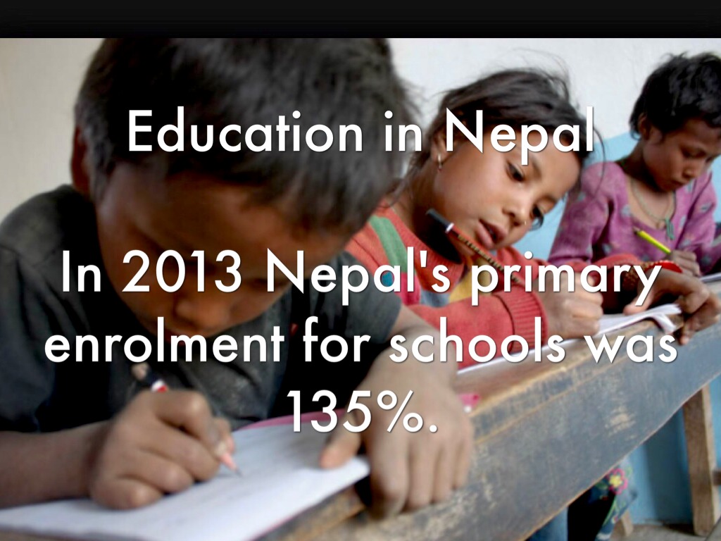 In 2013 Nepal's primary enrolment for schools was 135%.