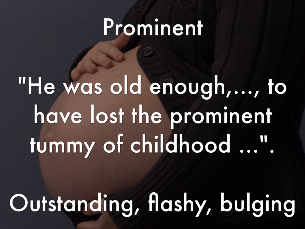 "He was old enough,..., to have lost the prominent tummy of childhood ...".