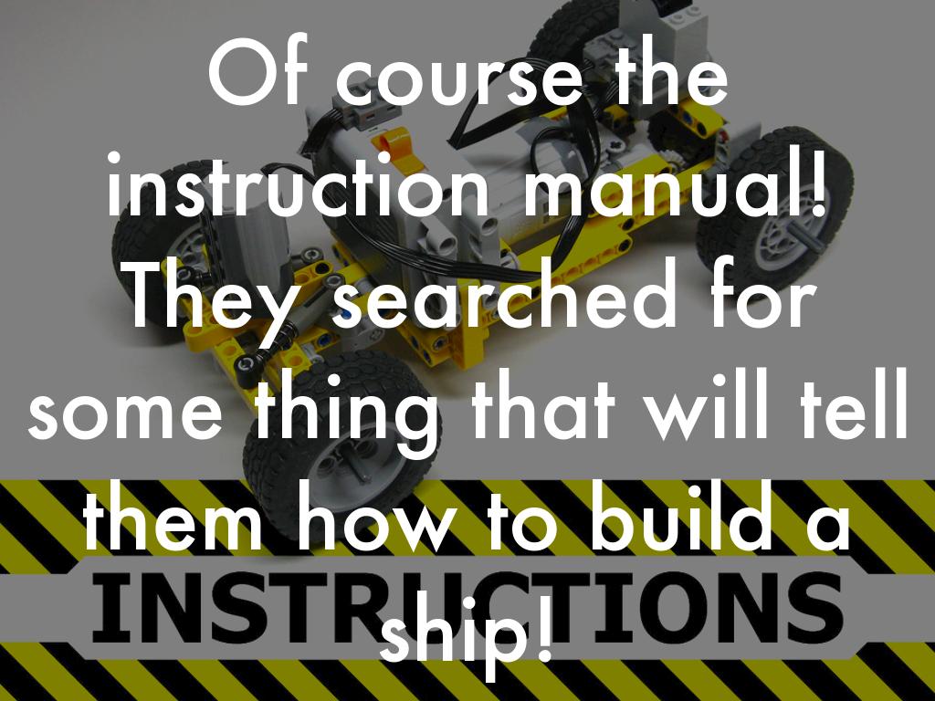 Of course the instruction manual! They searched for some thing that will tell them how to build a ship!