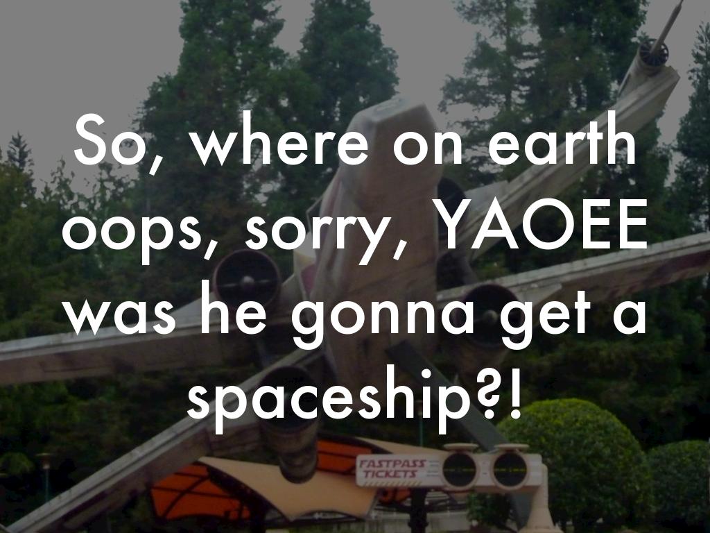 So, where on earth oops, sorry, YAOEE was he gonna get a spaceship?!