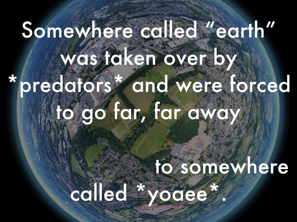 Somewhere called “earth” was taken over by *predators* and were forced to go far, far away