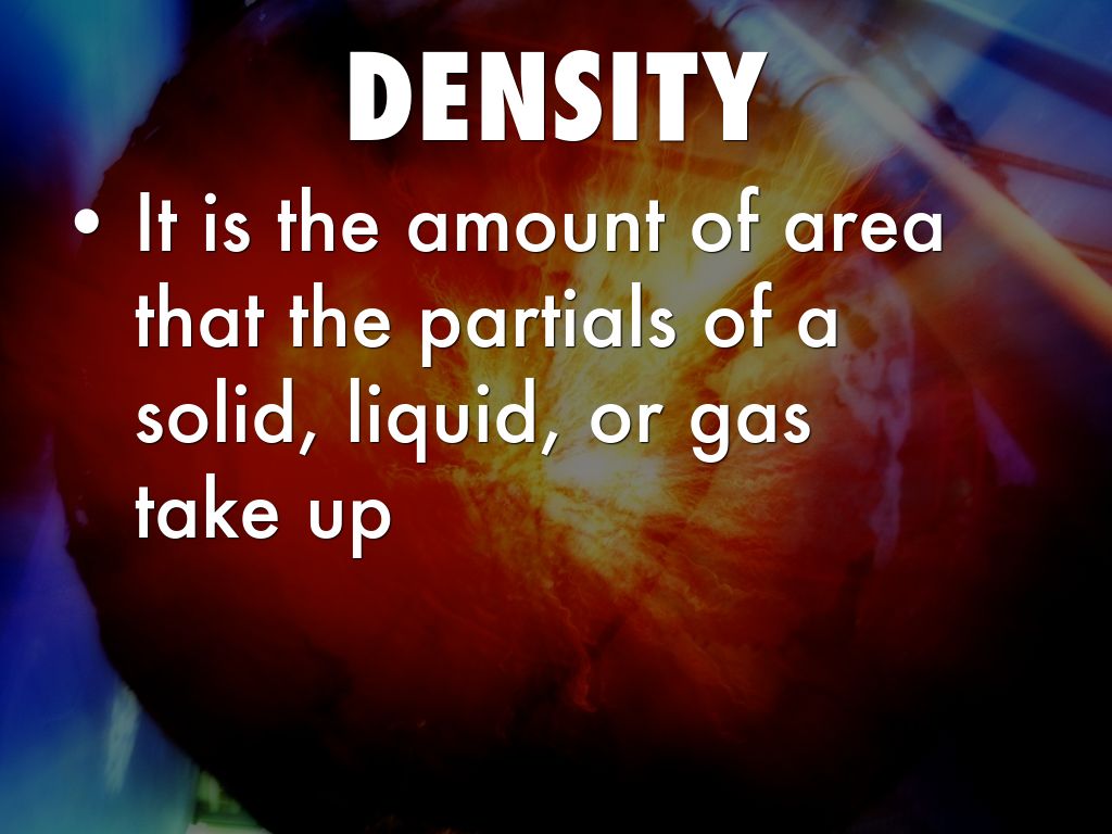 • It is the amount of area that the partials of a solid, liquid, or gas take up
